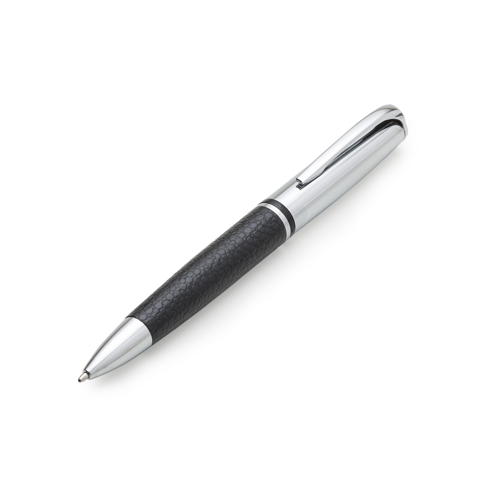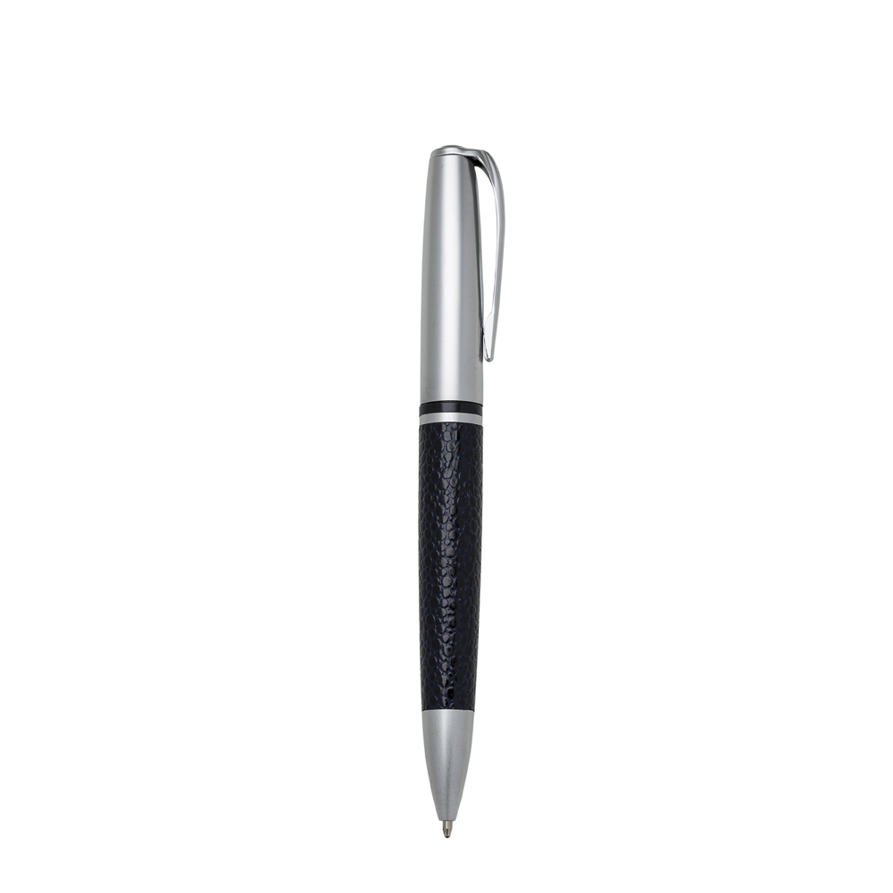 Descrição: Caneta metálica com carga esferográfica azul 1.0 mm e acionamento por rotação.